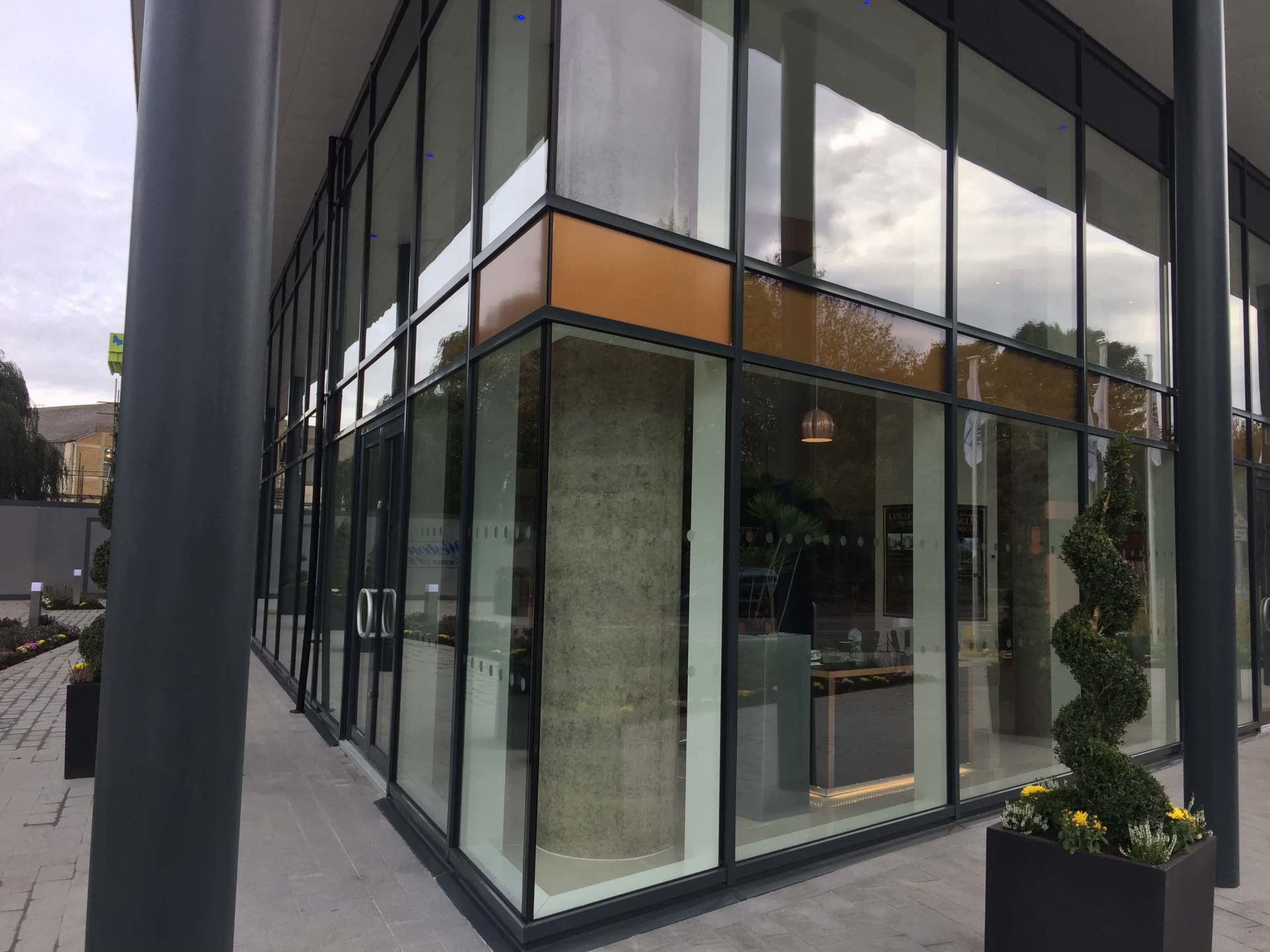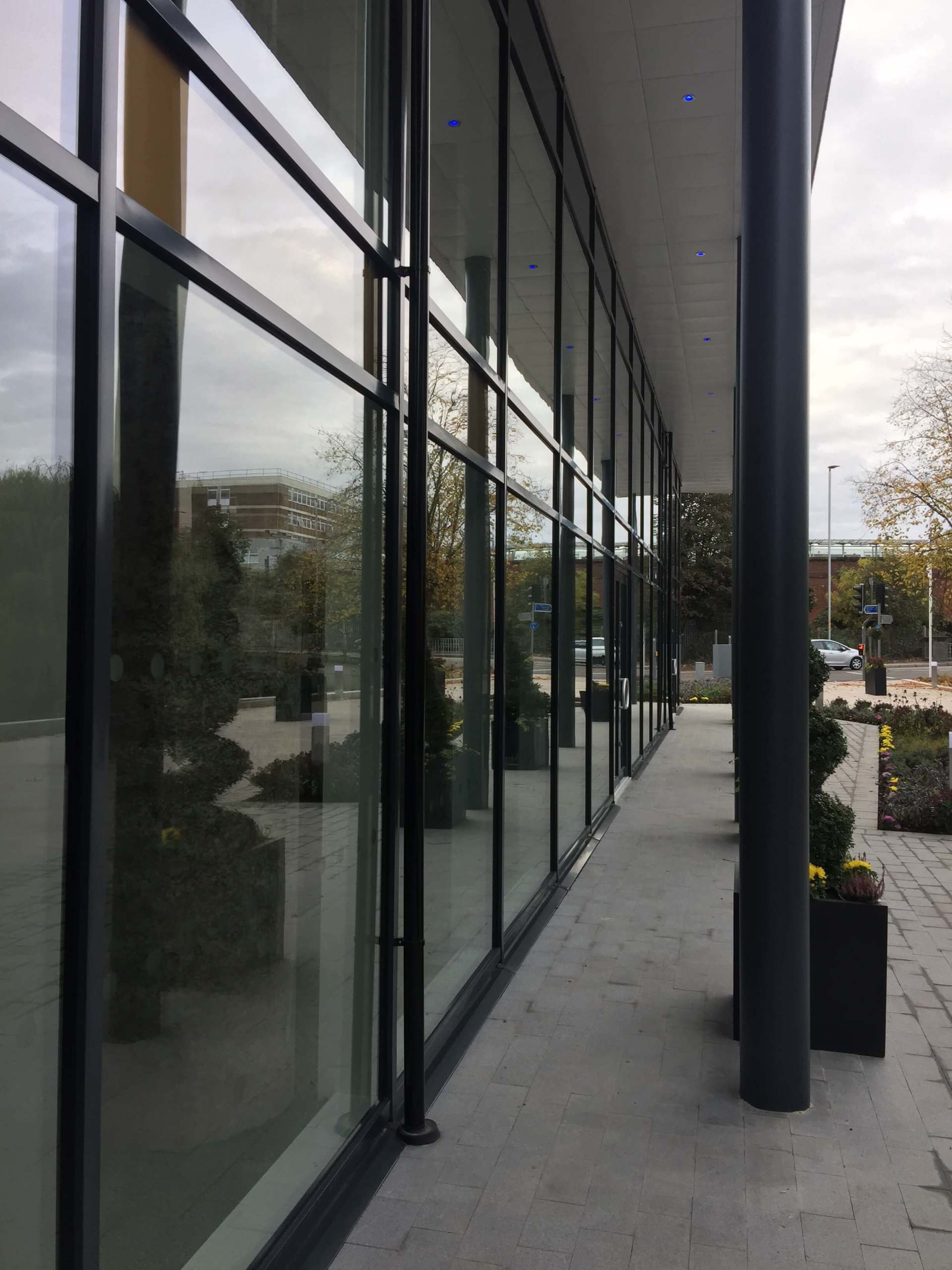 Commercial Project Suffolk - Aluminium glazed curtain wall screens, with automatic sliding doors